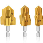 سه عدد مته با سایزهای مختلف این مجموعه شامل سه عدد مته کاجی پلهای با سایزبندی دقیق 15 تا 19 میلیمتر، 18 تا 24 میلیمتر و 24 تا 31 میلیمتر است. این تنوع سایز باعث میشود بدون نیاز به چند ابزار مختلف، بتوانید انواع دهانه لولهها را با دقت و سرعت گشاد کنید
