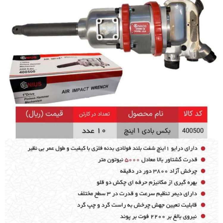 • دارای درایو 1 اینچ شفت بلند فولادی بدنه فلزی با کیفیت و طول عمر بینظیر